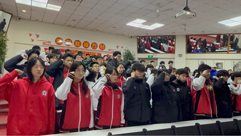 誓言铿锵,响彻校园。大会迎来最庄严的时刻,高一年级全体同学起立,高举右拳庄严宣誓。“弘扬一二·九精神,争做新时代好青年”的呐喊声铿锵有力,这是青春对历史的回应,是少年对时代的承诺,更是全体高一学子矢志不渝的信念与追求。